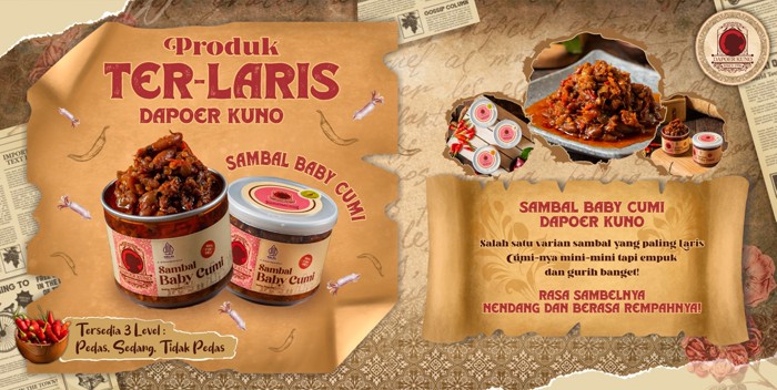 Dapoer Kuno kini memiliki 11 macam varian sambal ukuran 150 gr. 7 di antaranya merupakan sambal dengan topping, serta 4 lainnya sambal polos. Tak hanya sambal, Dapoer Kuno juga menghadirkan 3 varian lauk siap makan berukuran 250 gr yang praktis dan cocok untuk solusi lapar darurat, karena semua produk Dapoer Kuno sudah siap santap.